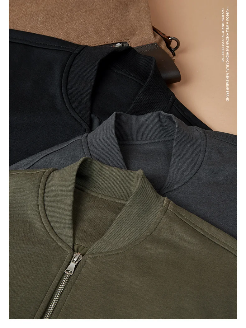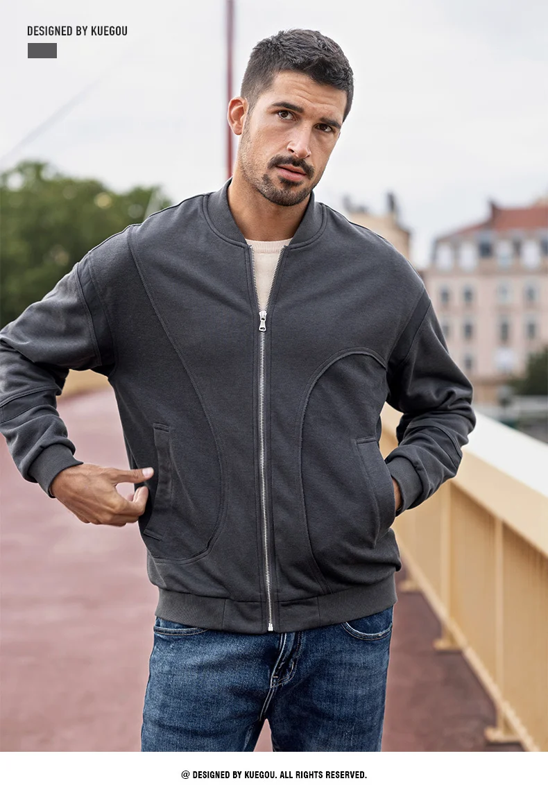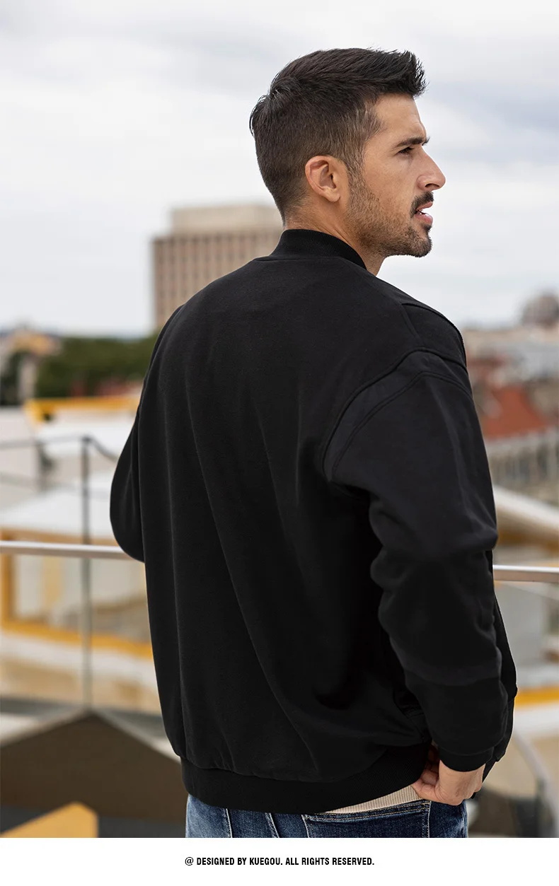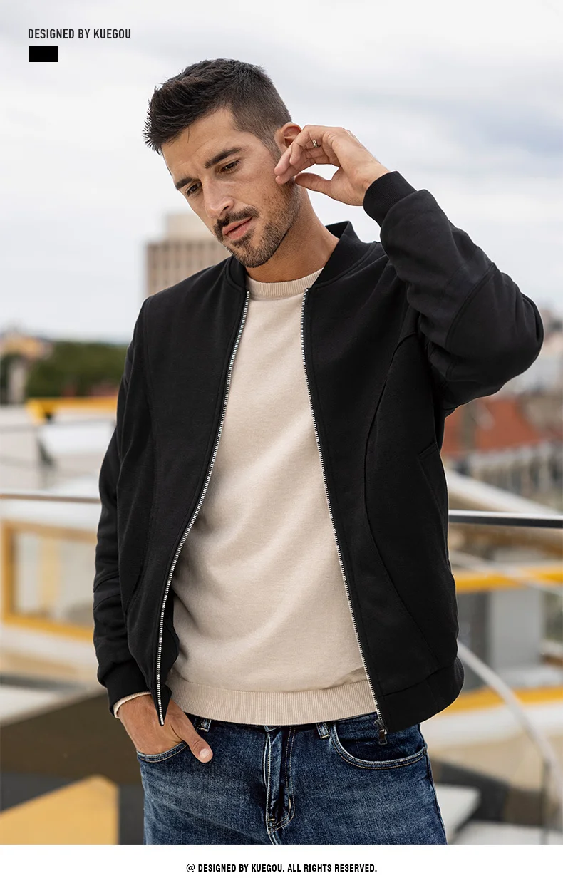 Мужская куртка-бомбер на молнии KUEGOU, Черная бейсбольная куртка-б...