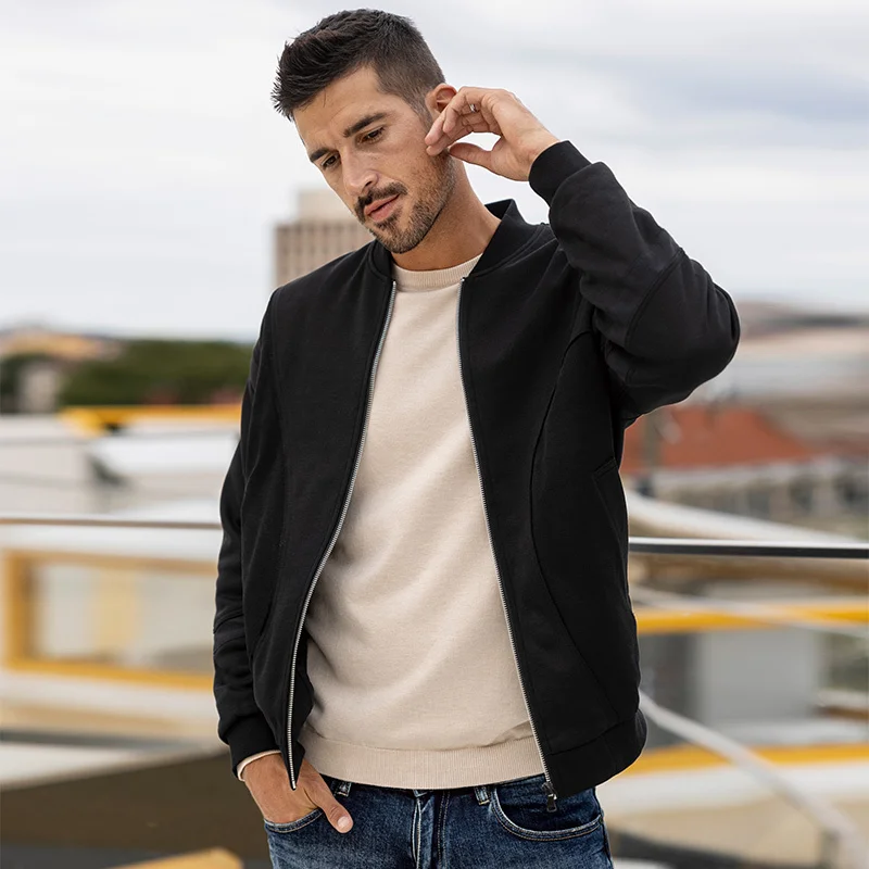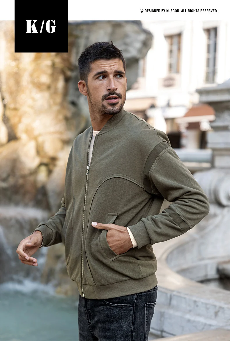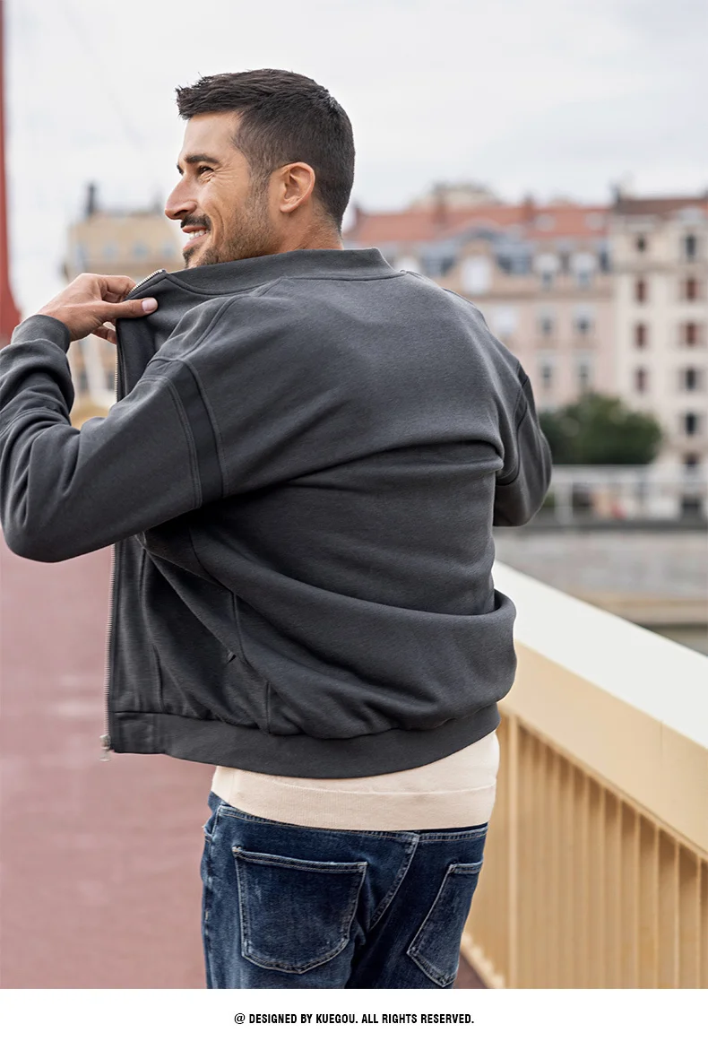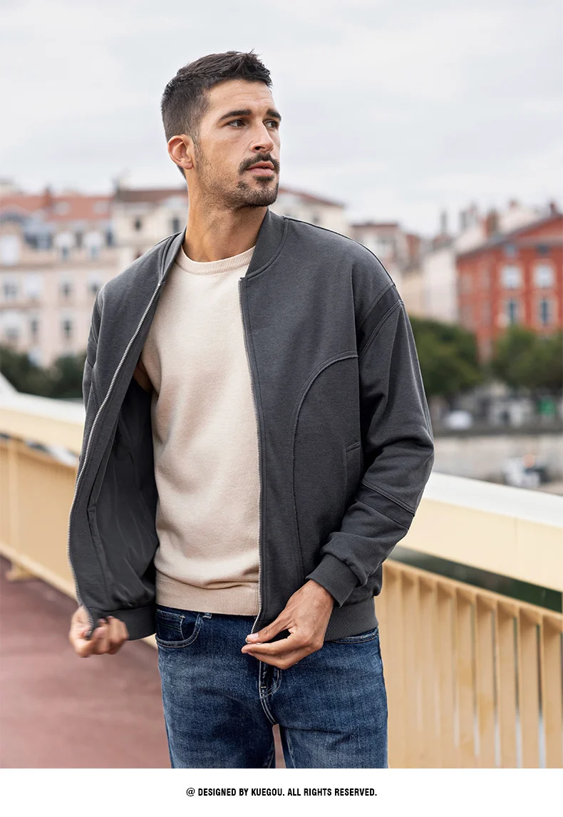 Мужская куртка-бомбер на молнии KUEGOU, Черная бейсбольная куртка-б...