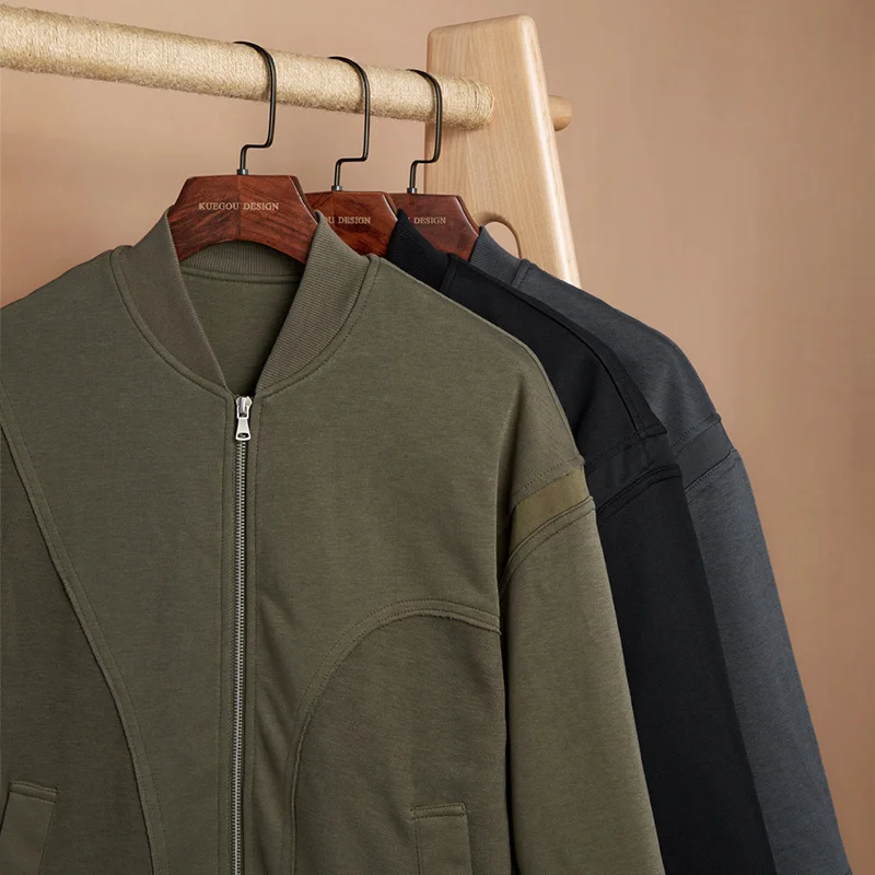 KUEGOU 2022 Весенняя черная куртка для мужчин, пальто в стиле хип-хоп, Японская уличная одежда, винтажная Мужская Корейская куртка-бомбер, бейсбольная Университетская одежда 8831