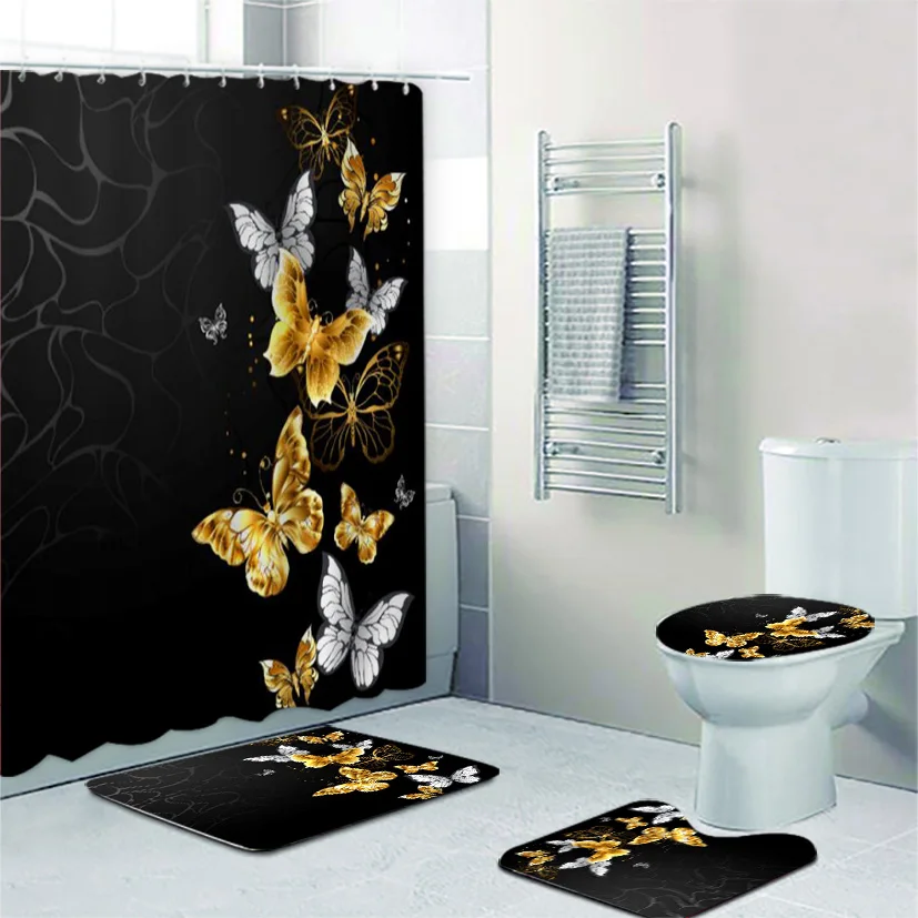 Набор штор для душа, черного и золотого цвета, с изображением бабочек, ювелирное изделие бабочка