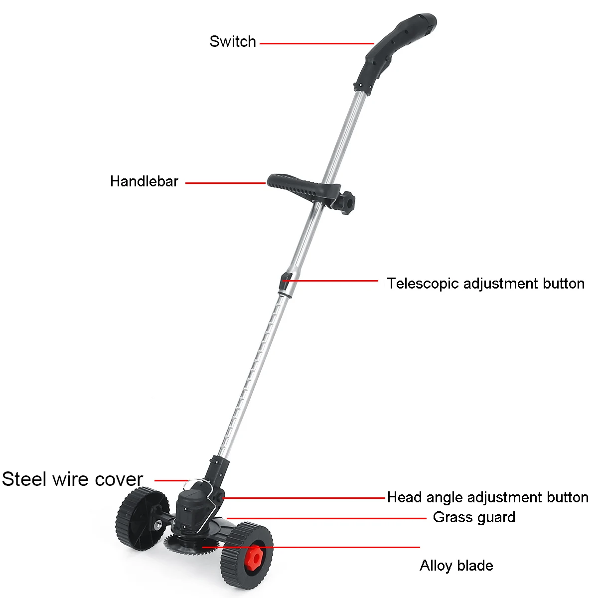 Особенности:● Двигатель из чистой меди, высокая мощность, быстрая скорость● Беспроводной электрический травой тример● Перезаряжаемый● Используется для удаления сорняков, обрезки газонов и формирования деревьев.● Независимый переключатель безопасности и триггер● Свободная Регулируемая длина 39,4-51,1 дюймов для более комфортной работы во дворе.● Регулируемый угол головы 180 ° для легкой обрезки областей, которые трудно достичь, таких как под деревьями, углами, цветниками и т. д.● Литиевая батарея, до 30 мин рабочего времени.