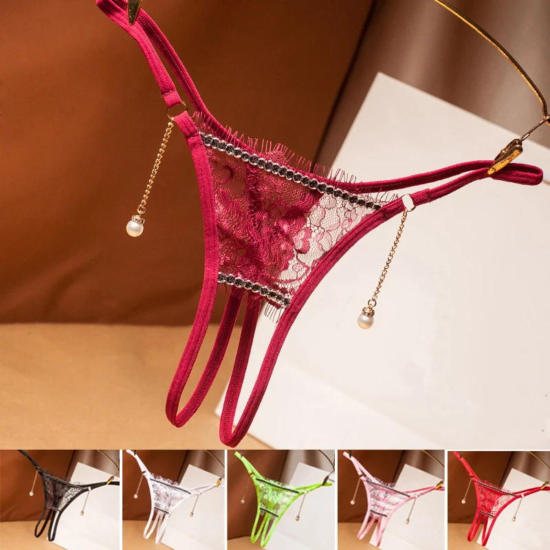Кружевное нижнее белье, женские трусики, открытые пилочки, без соблазнения, с жемчужной подвеской, сексуальные стринги, женское нижнее белье