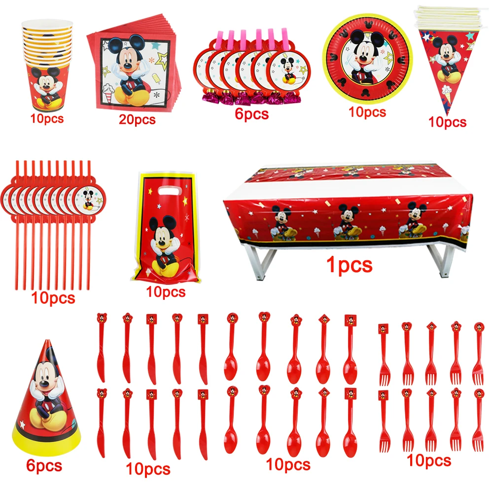 81 шт. одноразовая посуда с изображением Красного Микки Мауса, бума...