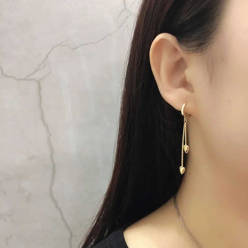 Серьги-подвески серебряного цвета с двойной кисточкой в форме сердц...