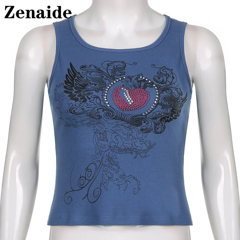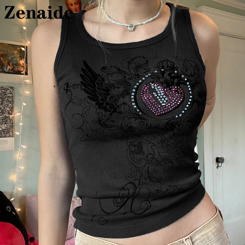 Женский винтажный трикотажный топ Zenaide Fairy с принтом гранж, Черный Модный пикантный укороченный топ без рукавов с открытыми плечами, Y2K, осень 2021