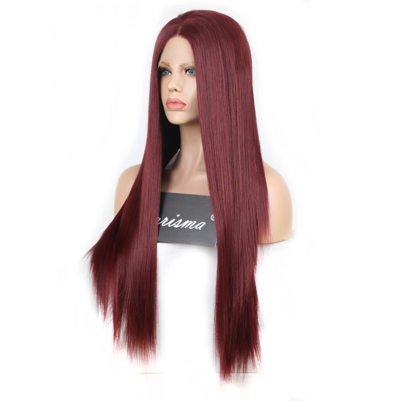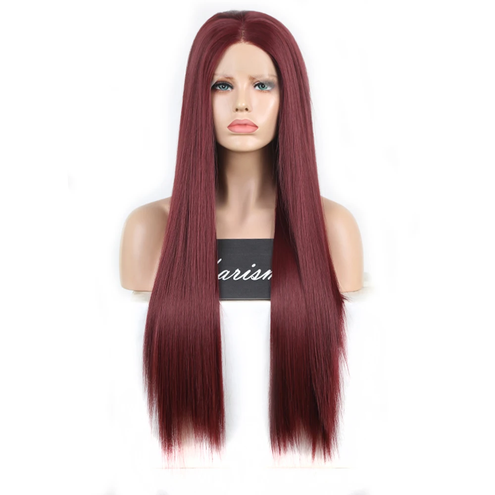 Парики из синтетического кружевного фронта Charisma для черных женщин, 26 дюймов, длинный прямой парик с кружевным фронтом, средняя часть бордового парика, косплей