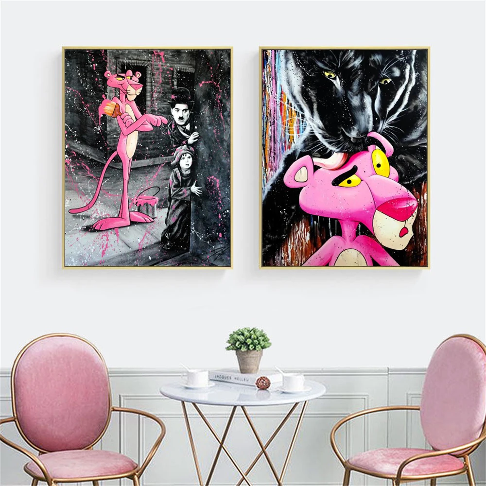 Уличное граффити, искусственное оформление, Настенная картина с розовой пантерой, украшение для детской комнаты, детские подарки, Декор