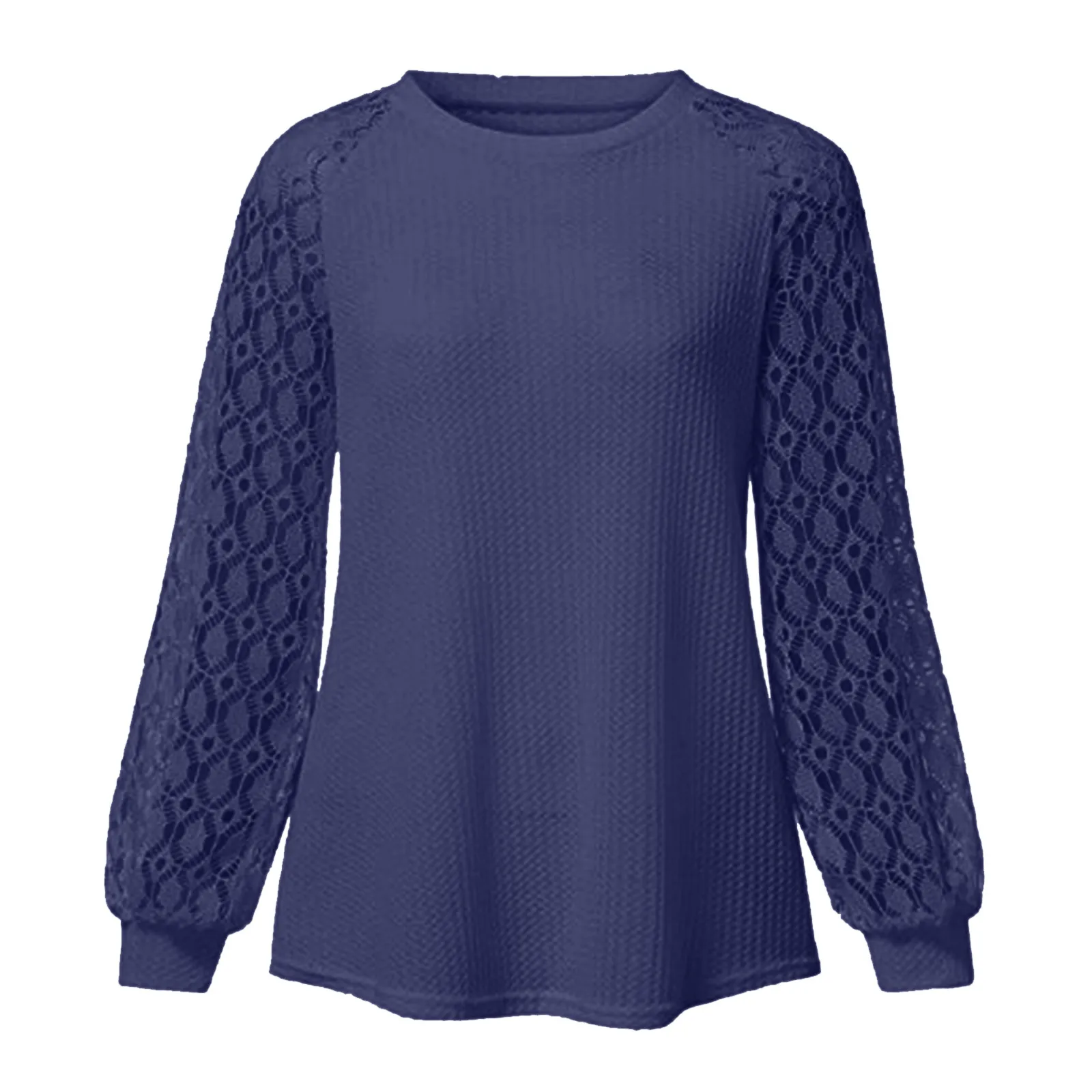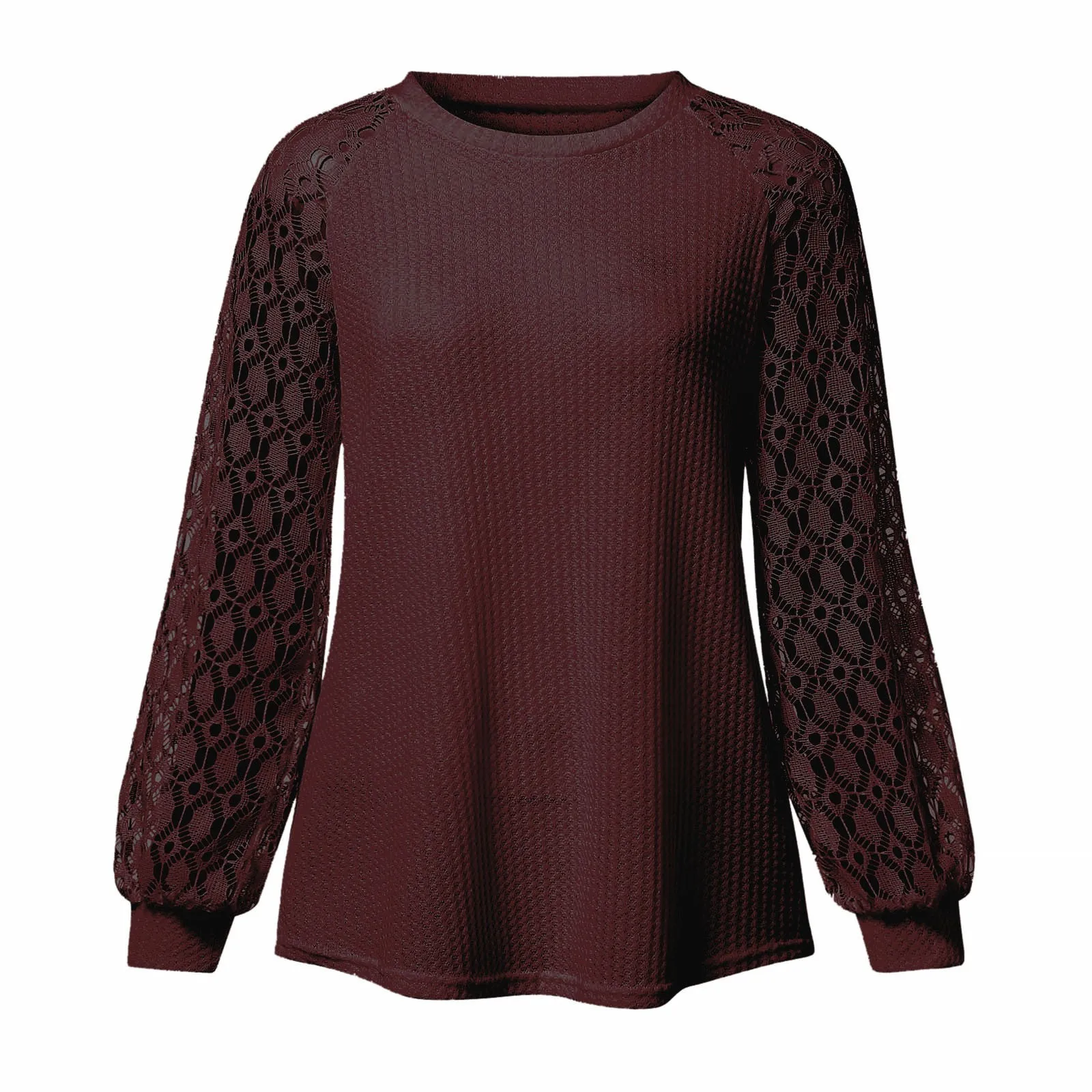 Осенне-зимние женские кружевные свободные топы с круглым вырезом и длинными рукавами