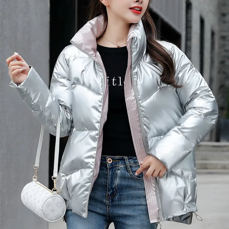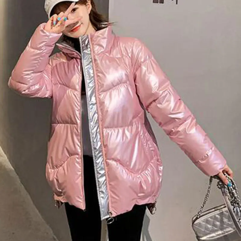 Светоотражающая женская зимняя куртка, теплая короткая парка с подкладкой, повседневное толстое пальто большого размера с воротником-стойкой из хлопка, женские парки