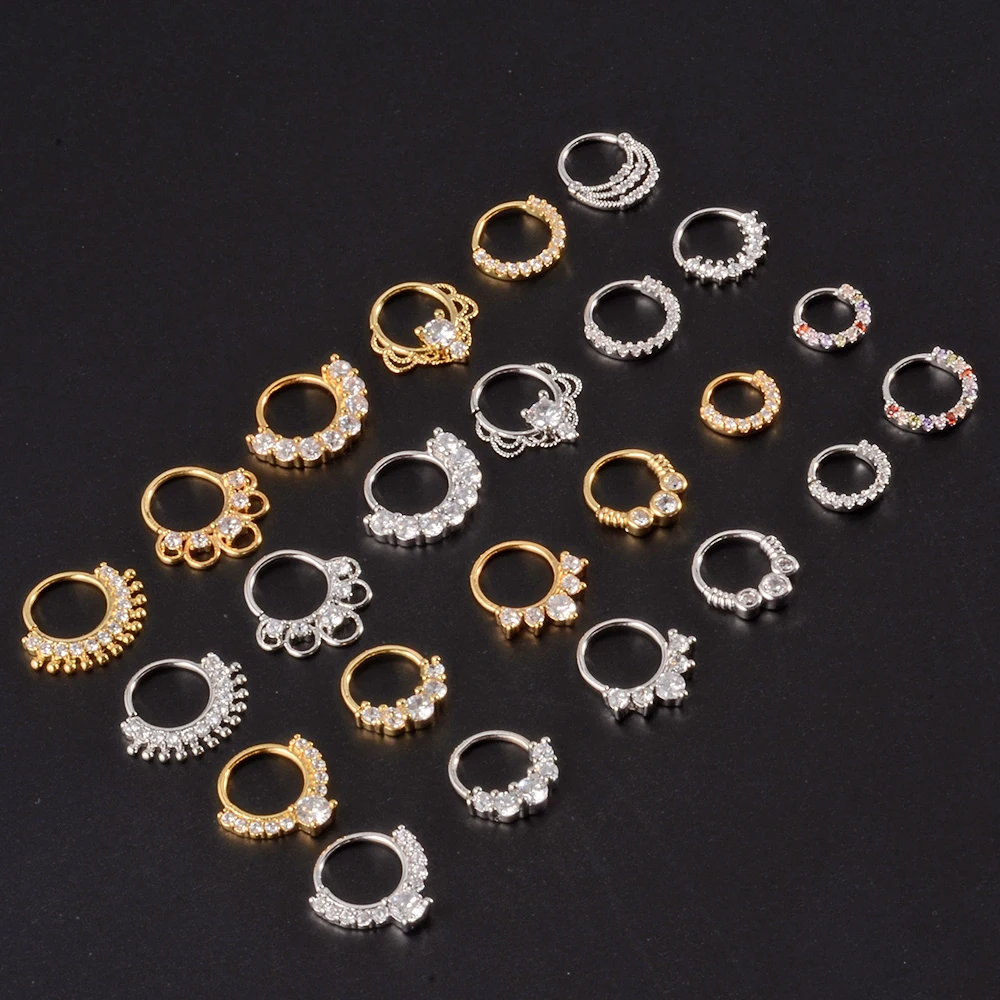Кольцо для носа гибкое с фианитом, ювелирное украшение для пирсинга ноздрей, перегородки, Козелка, завитка ушной раковины, ягодиц, 16 штук