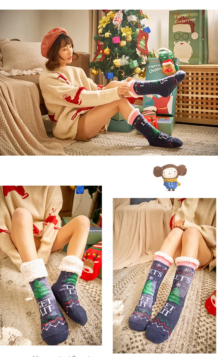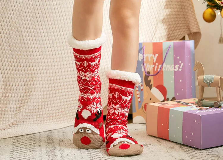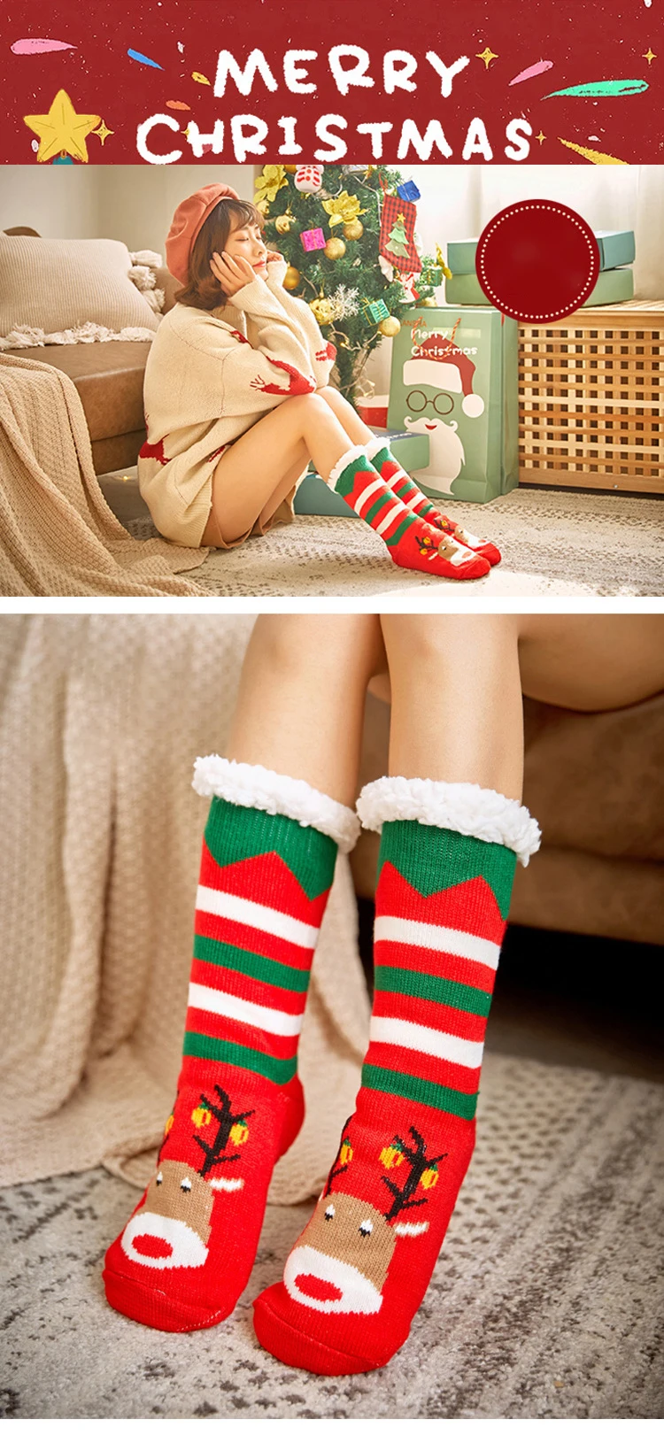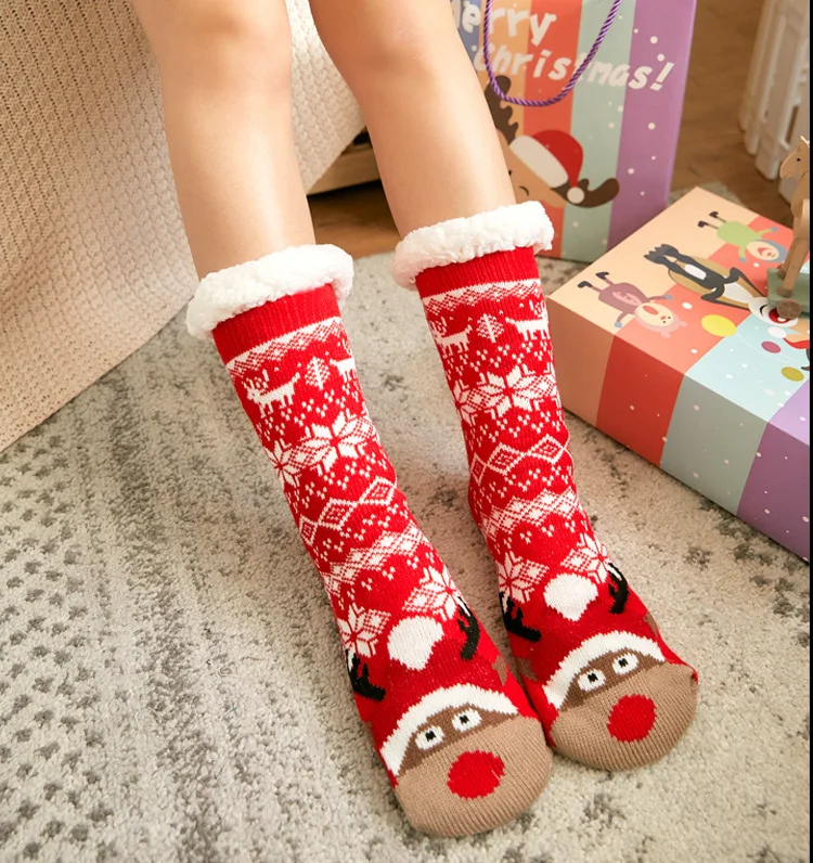 Симпатичные носки с изображением лося для дам, зимние толстые теплые носки для пола, мягкие дышащие носки для сна, изысканный подарок на Новый год, рождественские носки