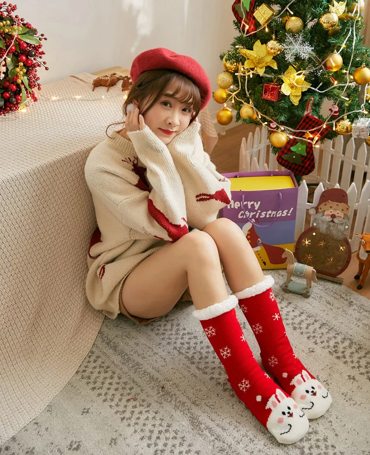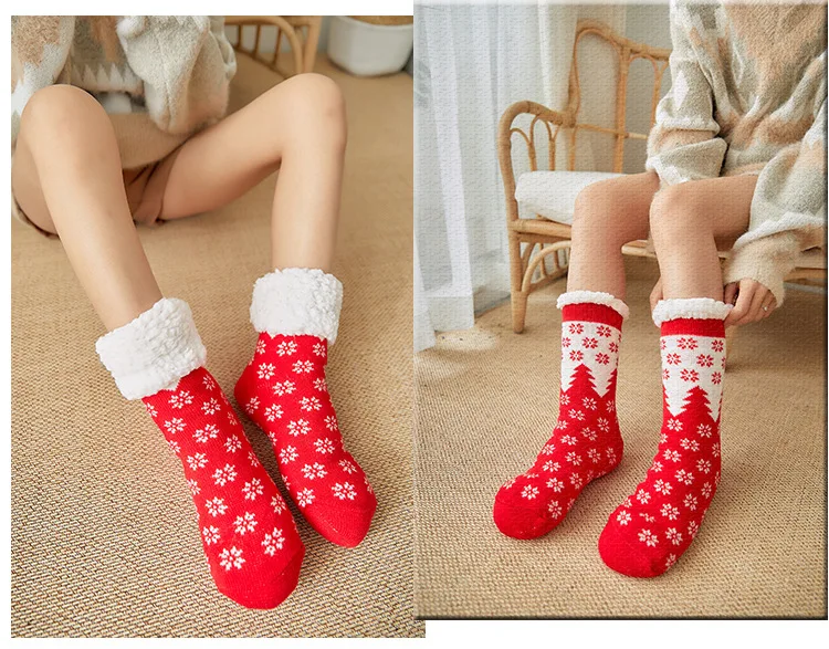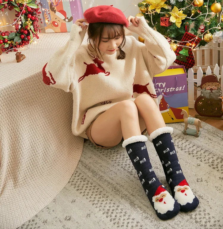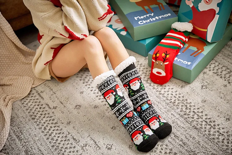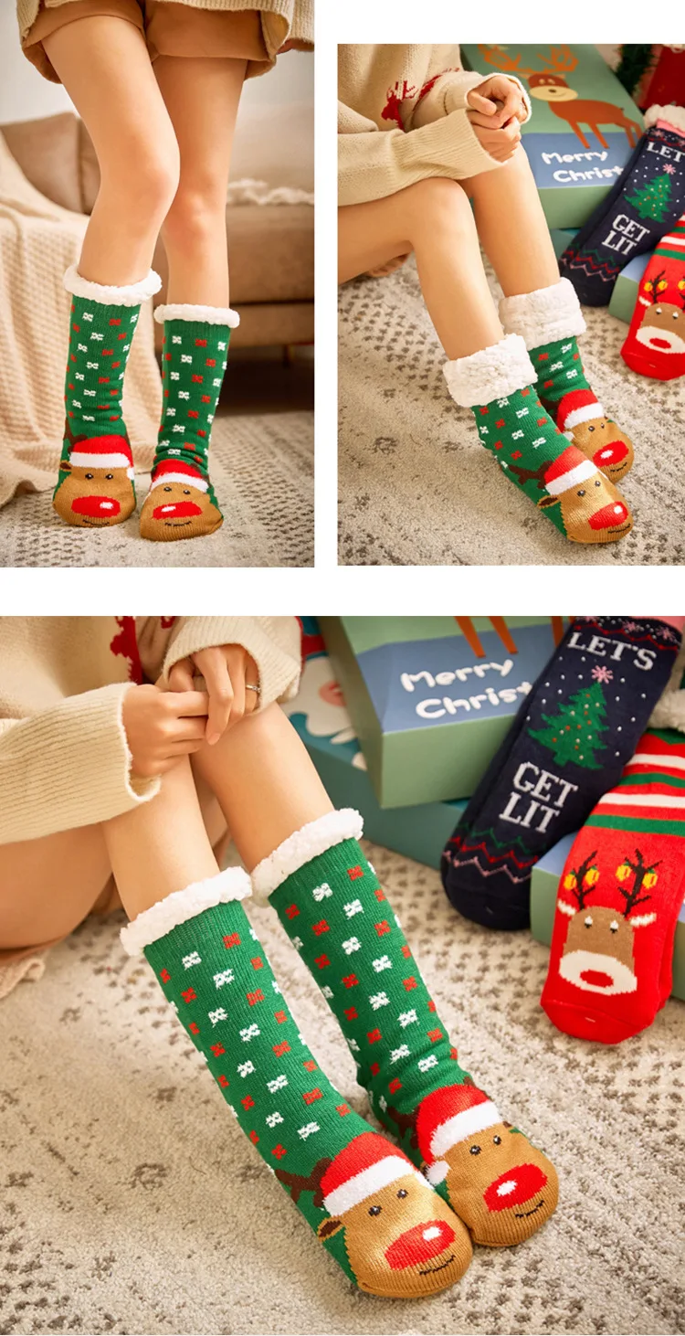 Симпатичные носки с изображением лося для дам, зимние толстые теплые носки для пола, мягкие дышащие носки для сна, изысканный подарок на Новый год, рождественские носки