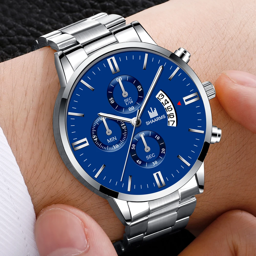 Модные мужские Роскошные деловые часы из нержавеющей стали, аналого...