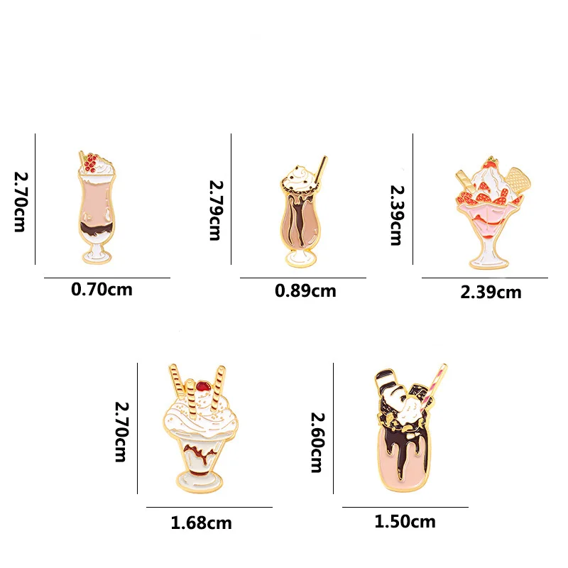 Эмалированная брошь в виде клубники, мороженого, шоколадного мороже...
