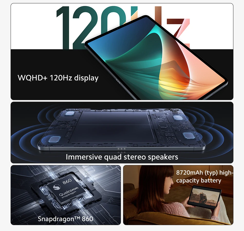 Глобальная версия Xiaomi Mi Pad 5 128 ГБ256 ГБ Планшетов 11" WQHD+ 120 Гц дисплей Snapdragon 860 четыре стереодинамика 8720 мАч Аккумулятор
