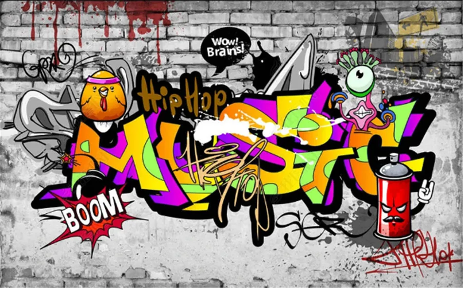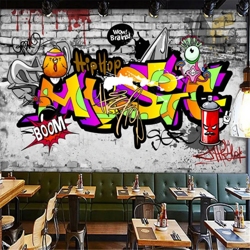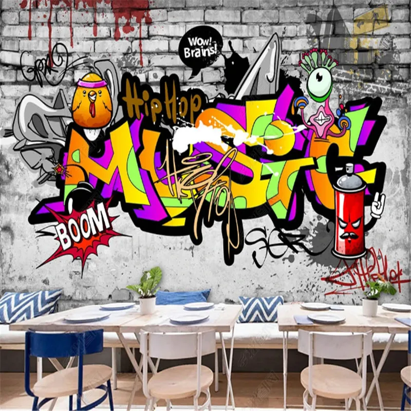 Крутые граффити 3D обои для бара ночного клуба магазина одежды фоно...