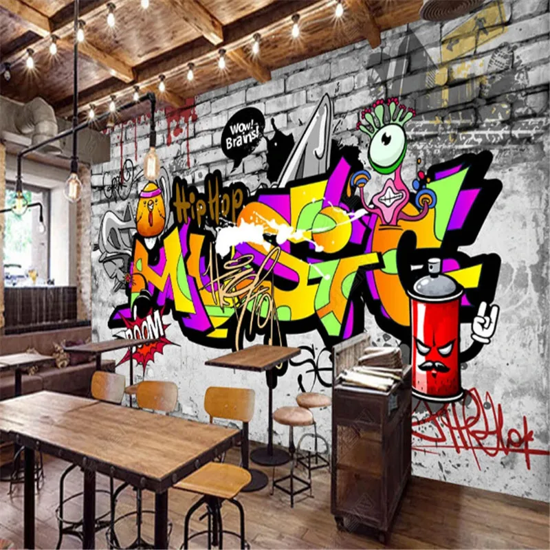 Европейский и американский тренд граффити бар промышленное украшение обои KTV фон обои роспись Papel De Parede