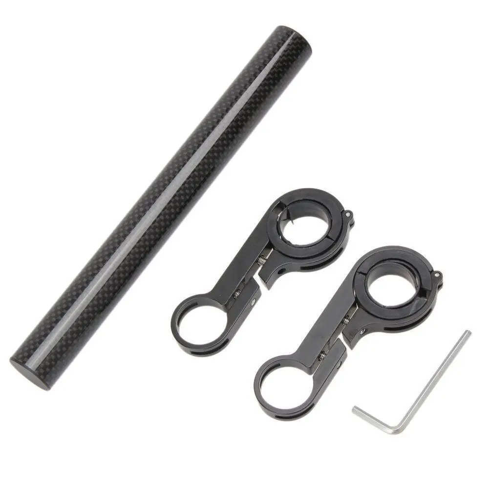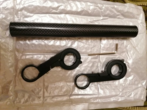 Углеродная трубка слишком тонкая 21,7 мм, хомуты не могут удерживать ее, трубка вращается в зажимах, даже когда хомуты затягиваются максимально. Продавец не рекомендует. В споре продавец полностью неправильно истолковал описание товара.