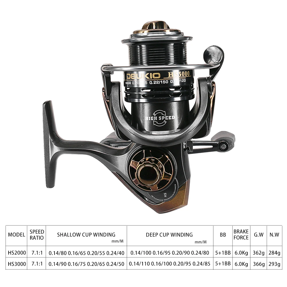 Бренд: DEUKIOТип рыболовной катушки: спиннинговое колесоМодель: HS2000/HS3000Сделано в КитаеПодшипник рыболовной катушки: 5 + 1BBЦвет изделия: серыйМеста для рыбалки: водохранилища, пруды, реки, озера, океаныХарактеристики продукта: удобная ручная работа, снижение веса, высокая твердость, металлический материал, равномерная сила, процесс нанесения краски