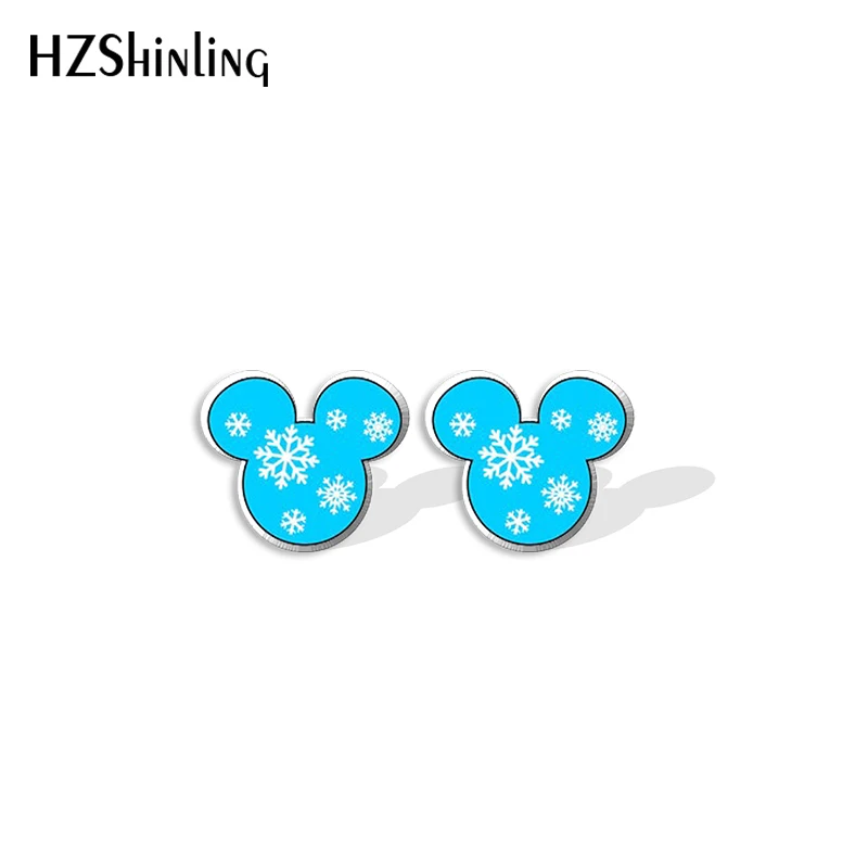 Серьги-гвоздики из акриловой смолы с рисунком Микки Мауса и Минни Д...
