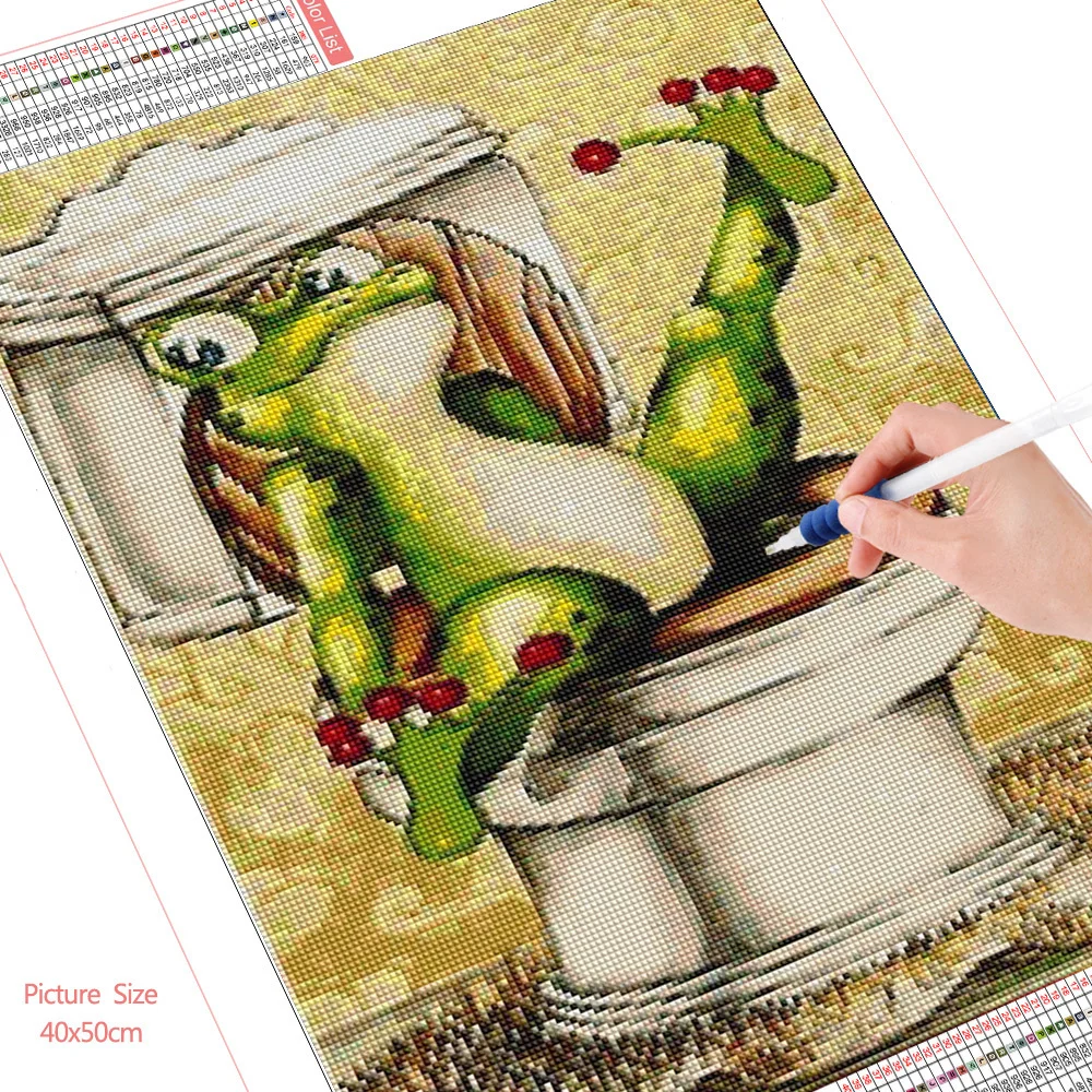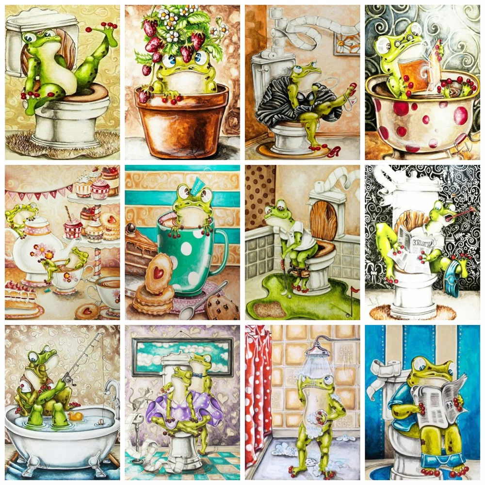 Алмазная живопись HUACAN, животное лягушка, полноразмернаяКруглая Мозаика, вышивка крестиком в ванную комнату, домашний декор