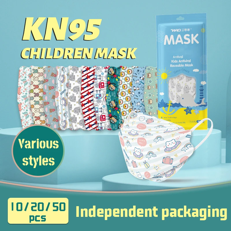 10 цветов, детская маска KN95 FFP2 с мультяшным принтом, маска для лица, подходит для детей, 4 слоя, многослойная защитная маска из оксида меди
