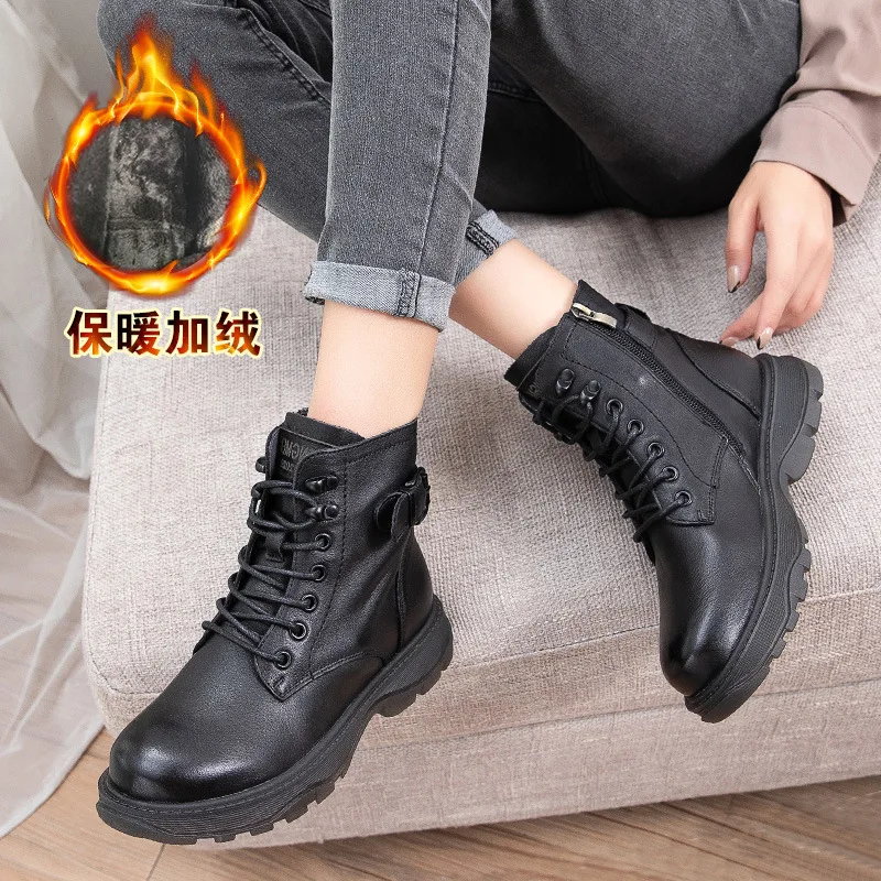 Новые женские ботинки, повседневная обувь на плоской подошве для вечеринок, удобные новые женские ботильоны на массивной подошве, кожаная повседневная женская обувь