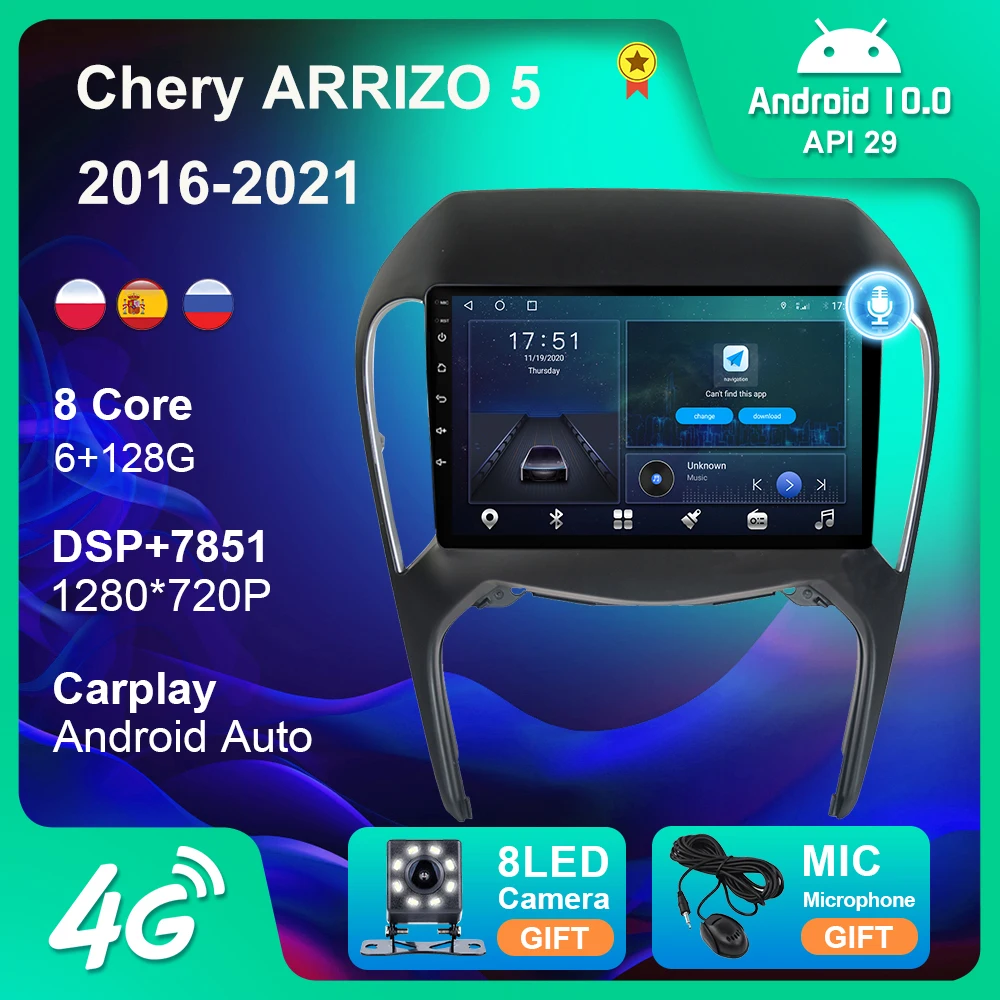 Автомагнитола 2 Din для Chery Arrizo 5 128-2016, 6 + 2020 ГГц, GPS-навигация, 4G, Wi-Fi, BT, Carplay, DSP, USB, Android