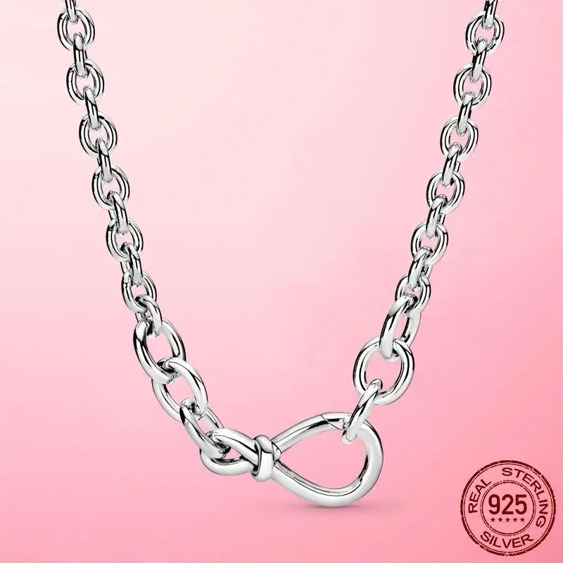 Роскошный ошейник из стерлингового серебра 925 пробы, женское ожерелье с бесконечностью и бесконечной застежкой, змеевидная цепочка, колье-чокер, женское ожерелье, ювелирные изделия