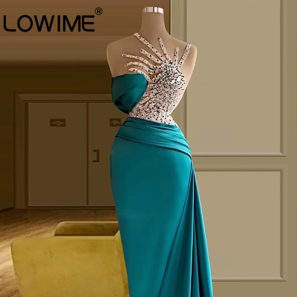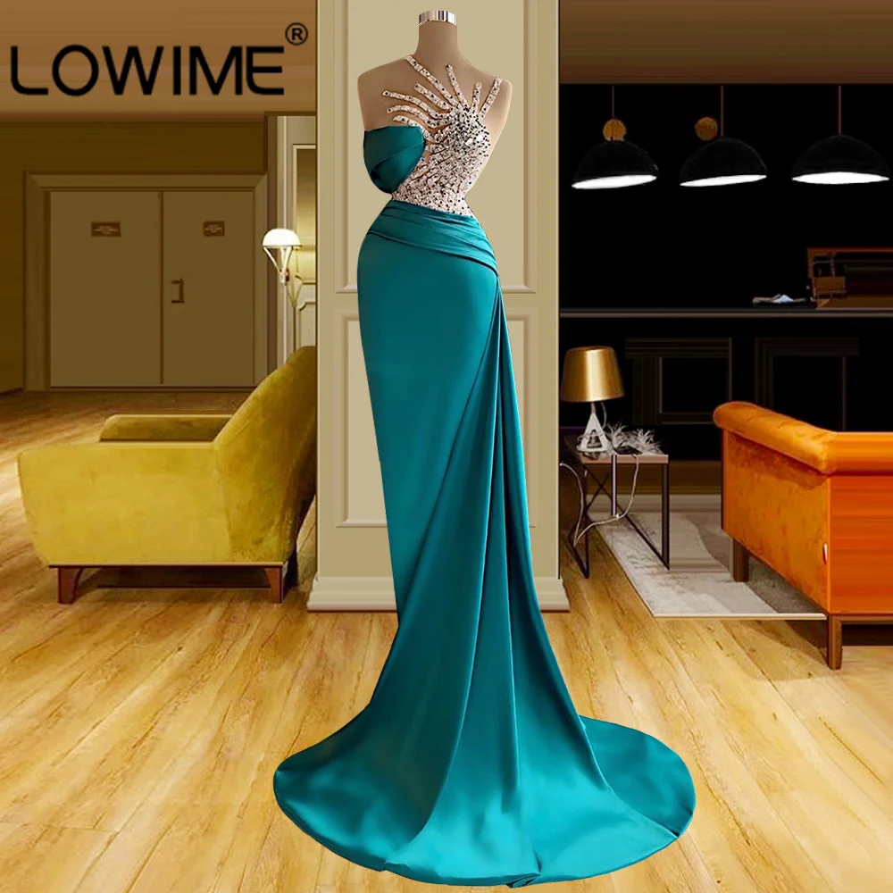 Элегантные зеленые вечерние платья с бусинами 2021, сатиновые арабские женские свадебные вечерние платья с длинным шлейфом, платья для выпускного вечера, платье