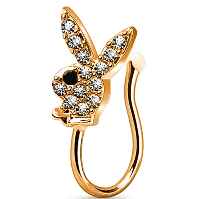 Кольцо-клипса для носа с изображением кролика, из нержавеющей стали
