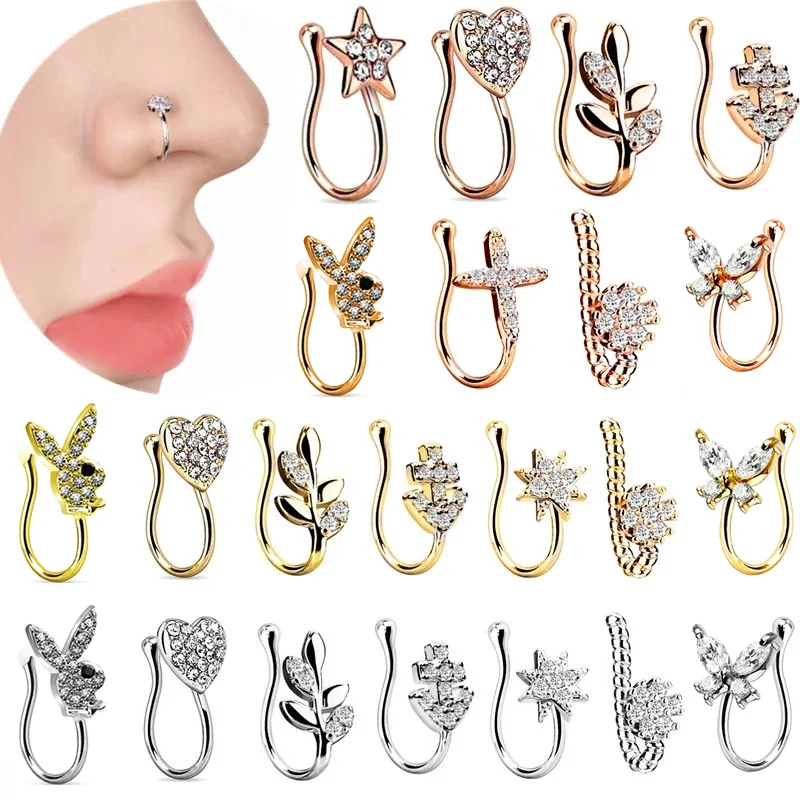 1 шт Нержавеющаясталь сердце изделие псевдо зажим на нос кольцо зве...