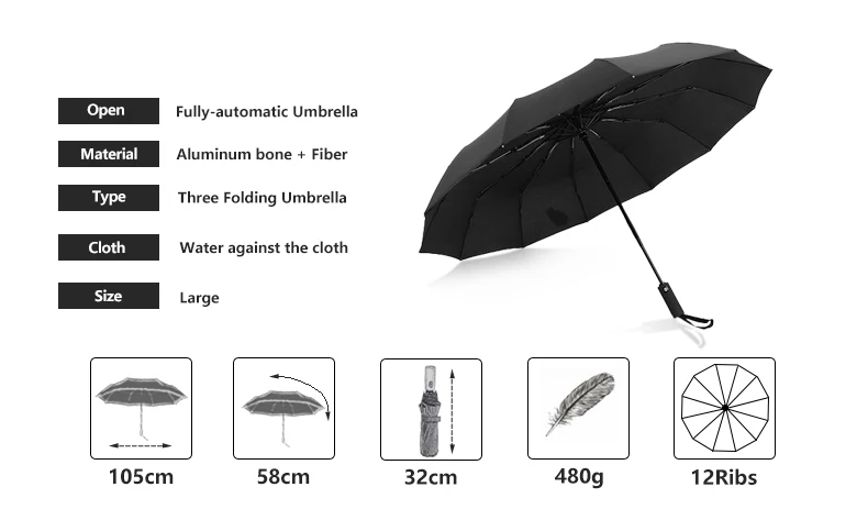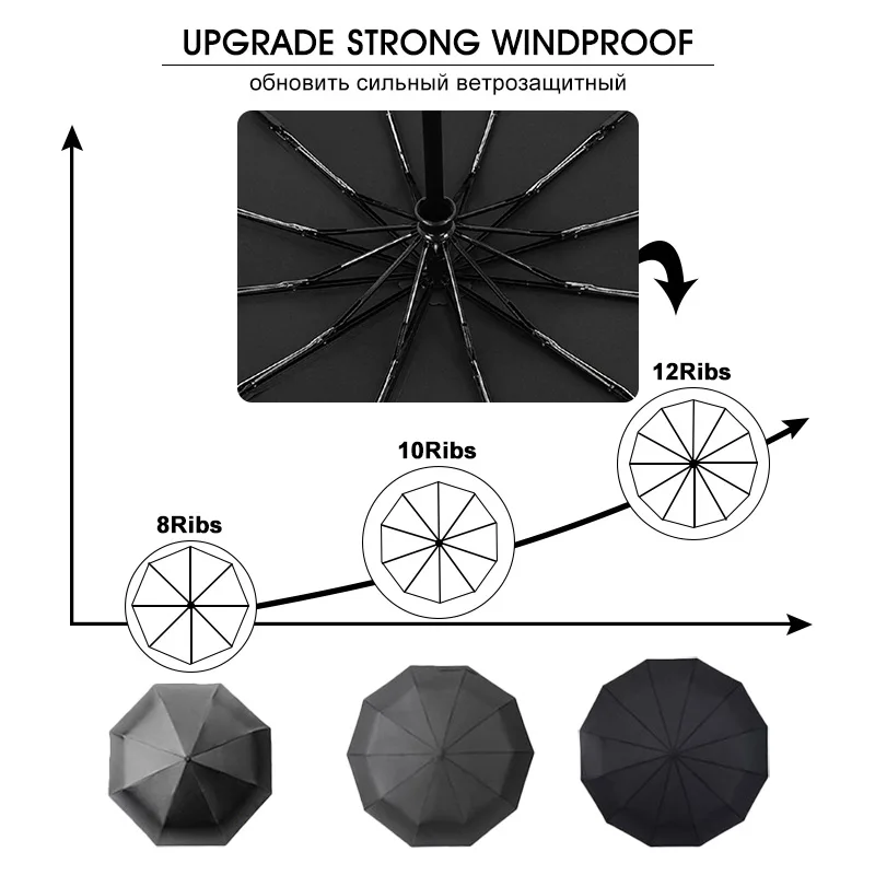 Автоматический зонт с 12 ребрами для мужчин и женщин, портативный д...