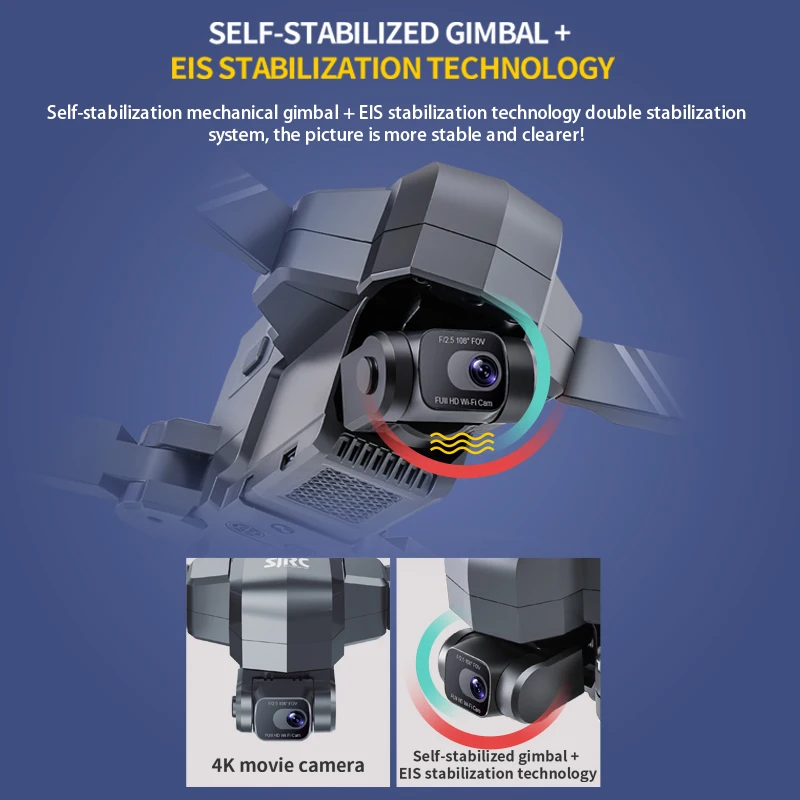 -Настоящий 4K со сверхвысоким разрешением Ultra HD, Камера с 2-гидростабилизатору и электронная Технология стабилизации изображения: EIS является весьма эффективным способом возмещение ущерба для упаковки крема для рук, дрожания проявляется в отвлекающих видео толчок во время воспроизведения. Оборудованный сочетает в себе светильник wight 2-Axis mechanical gimbal с новейшими профессиональными алгоритмами управления. Убедитесь, что камеры дрона обеспечивают высокое качество, уменьшая размытие, вызванное колебаниями во время полета