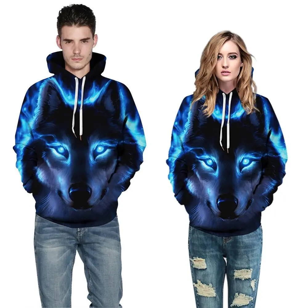 Модные толстовки с 3D принтом волка для мужчин и женщин, свитшоты, ...
