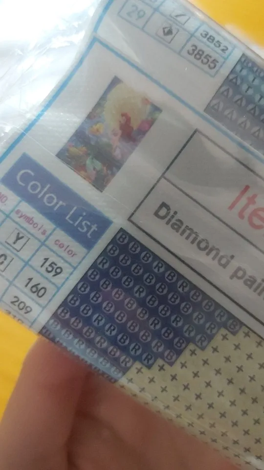 1. См. Таблицу сравнения на холсте, чтобы определить каждый номер алмаза и соответствующий номер печати на холсте.