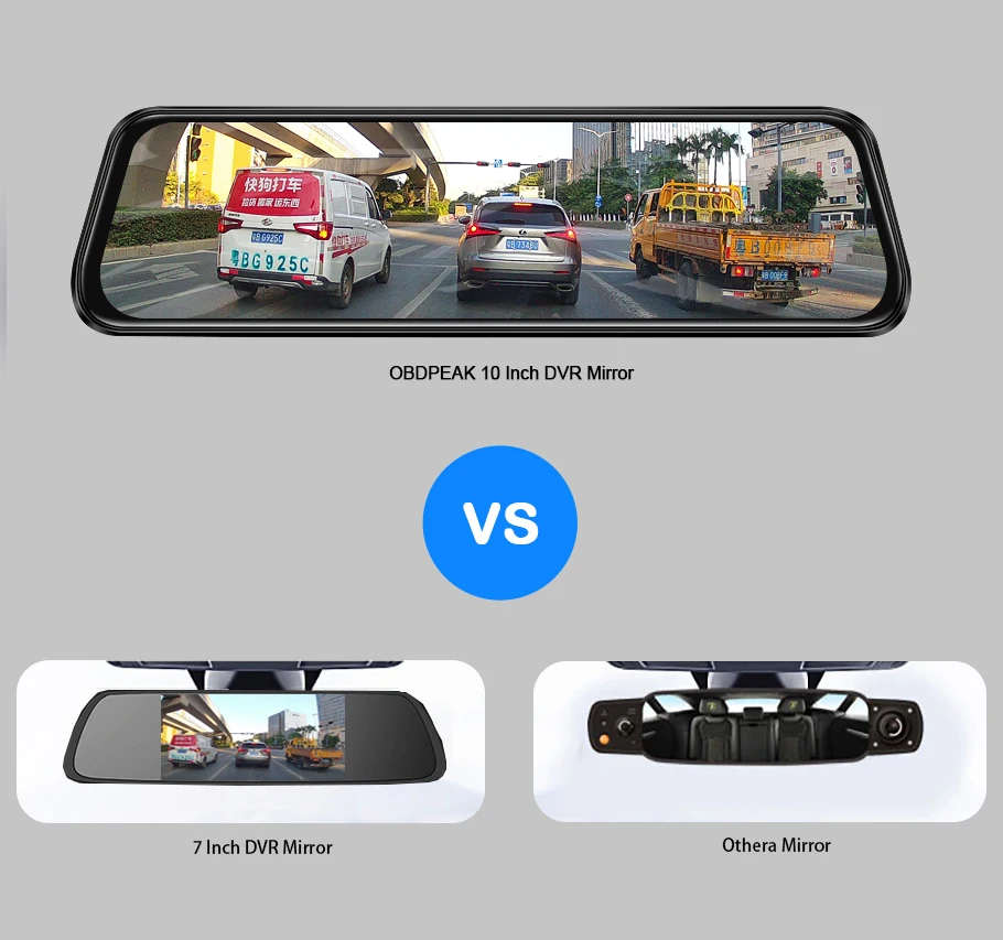 Потоковое мультимедиа + 10 ''IPS Сенсорное зеркало заднего вида + Переднее и заднее FHD 1080P + Супер ночное видение + Обратное изображение в реальном времени + 2.5D изогнутая поверхность экрана (стеклянная конструкция, устойчивое к царапинам Антибликовое покрытие, защита от отпечатков пальцев)