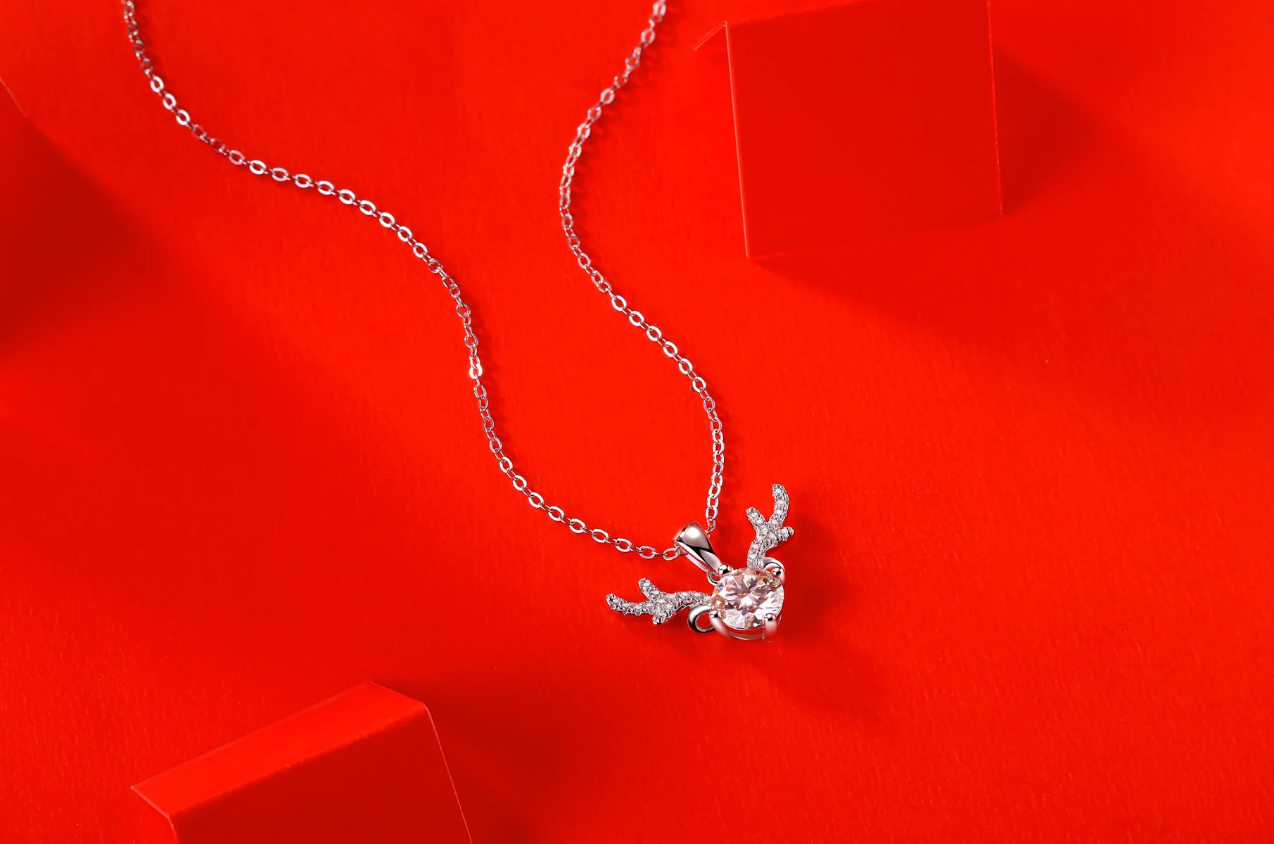Олень 1 карат, ожерелье с муассанитом для женщин и девушек, свадебная цепочка из настоящего серебра 925 пробы с подвеской в виде ангела и оленя, Подарочная коробка со светодиодом
