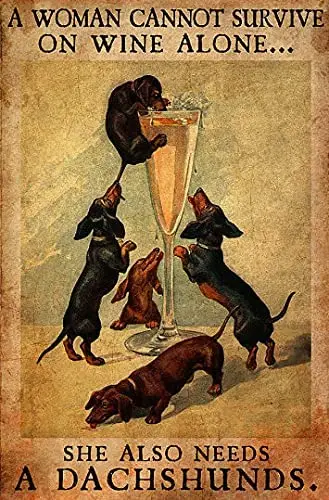 Металлическая жестяная лампа, женщина не может выжить на вине, она тоже должна быть одновременно, собаки Dachshunds и винтажное украшение для стен