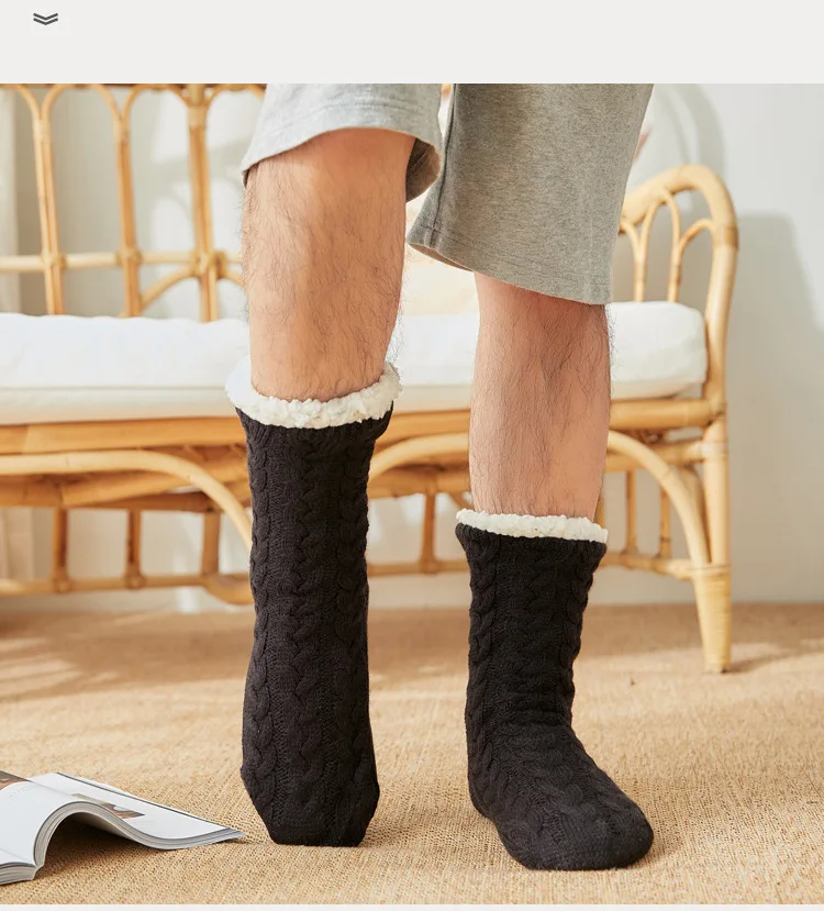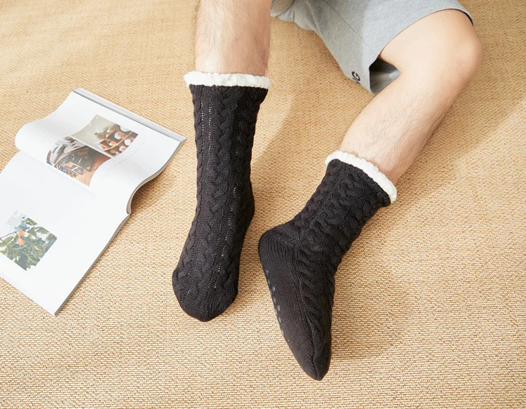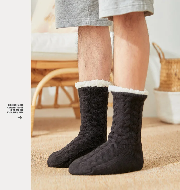 Мужские осенне-зимние толстые плюшевые мягкие нескользящие носки для домашнего пола теплые чулочно-носочные изделия до середины икры носки для снега