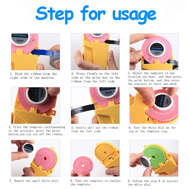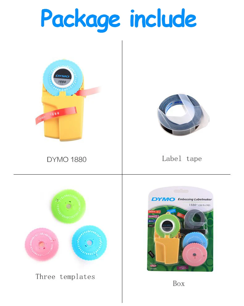 Название продукта: принтер этикеток Модель продукта: DYMO 1880 Ширина этикетки: 9 мм Dymo ручная лента для этикеток Метод печати: ручная печать Метод резки: ручная резка Удобный ручной принтер. Легко напечатать буквы, которые вы хотите. Неограниченная печать