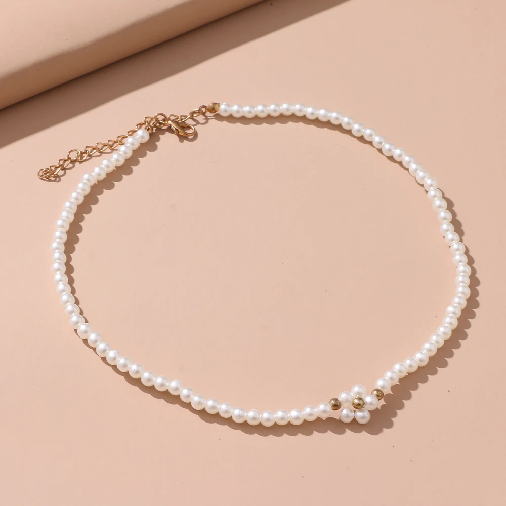 Модный Роскошный белый жемчуг Дейзи ожерелье с цепочкой, чокер, ожерелье для женщин с цветочным принтом Lariat замок воротник ожерелье ювелирные изделия вечерние браслеты с подвесками