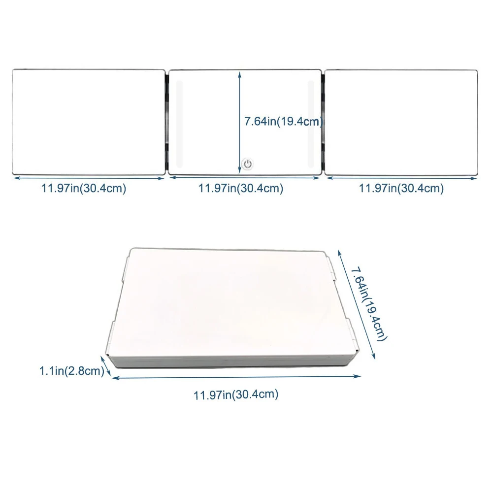 Зеркало для макияжа складное тройного сложения, 360 градусов, с регулируемой высотой