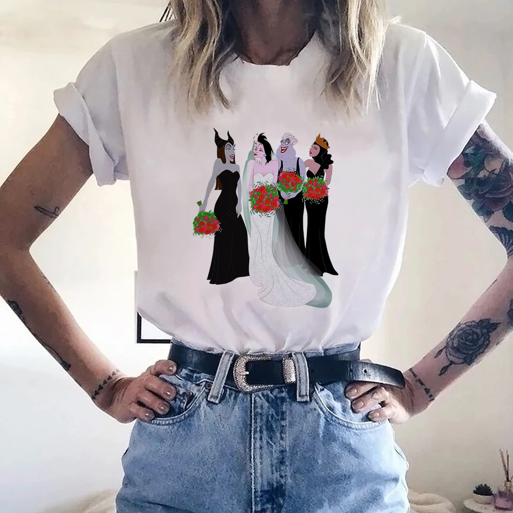 Белая женская футболка с изображением злодеев Диснея, Свадебный при...