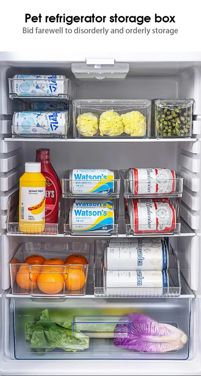 Новая коробка для хранения холодильника для домашних животных, кухонная корзина для сортировки напитков, самопадающая стойка для хранения