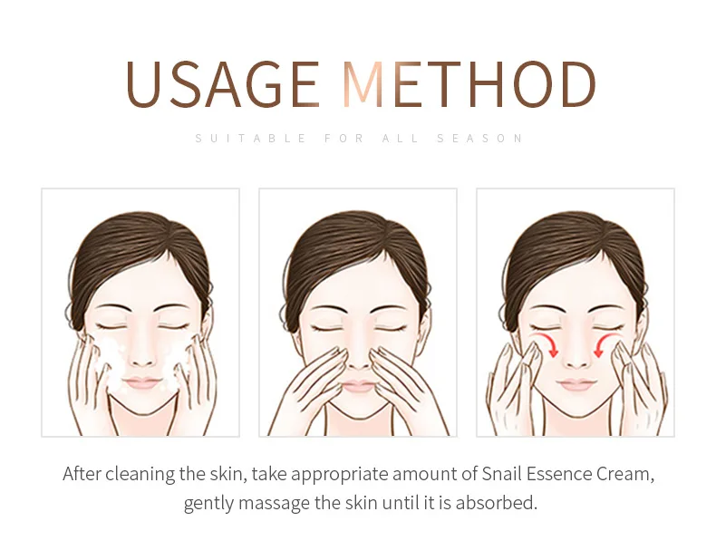 ①SNAIL эссенция● Восстановление поврежденной кожи повышает эластичность кожи②HYALURONIC кислота● Обладает большой увлажняющей способностью увлажнять сухую кожу③TREMELLA экстракт● Ярче грубая кожа эффективно делает кожу твердой и гладкой
