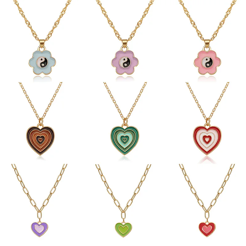 17KM винтажное красочное многослойное ожерелье в форме сердца для женщин пар влюбленных Модная Золотая цепочка ожерелья подарки ювелирные изделия