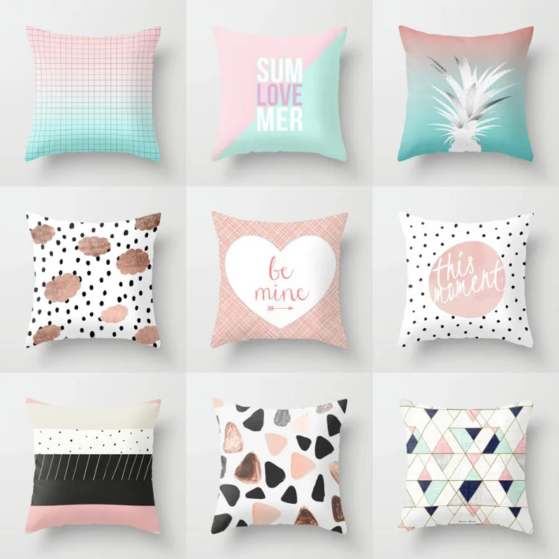 Чехол для подушки с розовым геометрическим рисунком, декоративный чехол из полиэстера и хлопка для дивана, кровати, домашний декор, автомобильный чехол для подушки, милый чехол для подушки 45*45 см