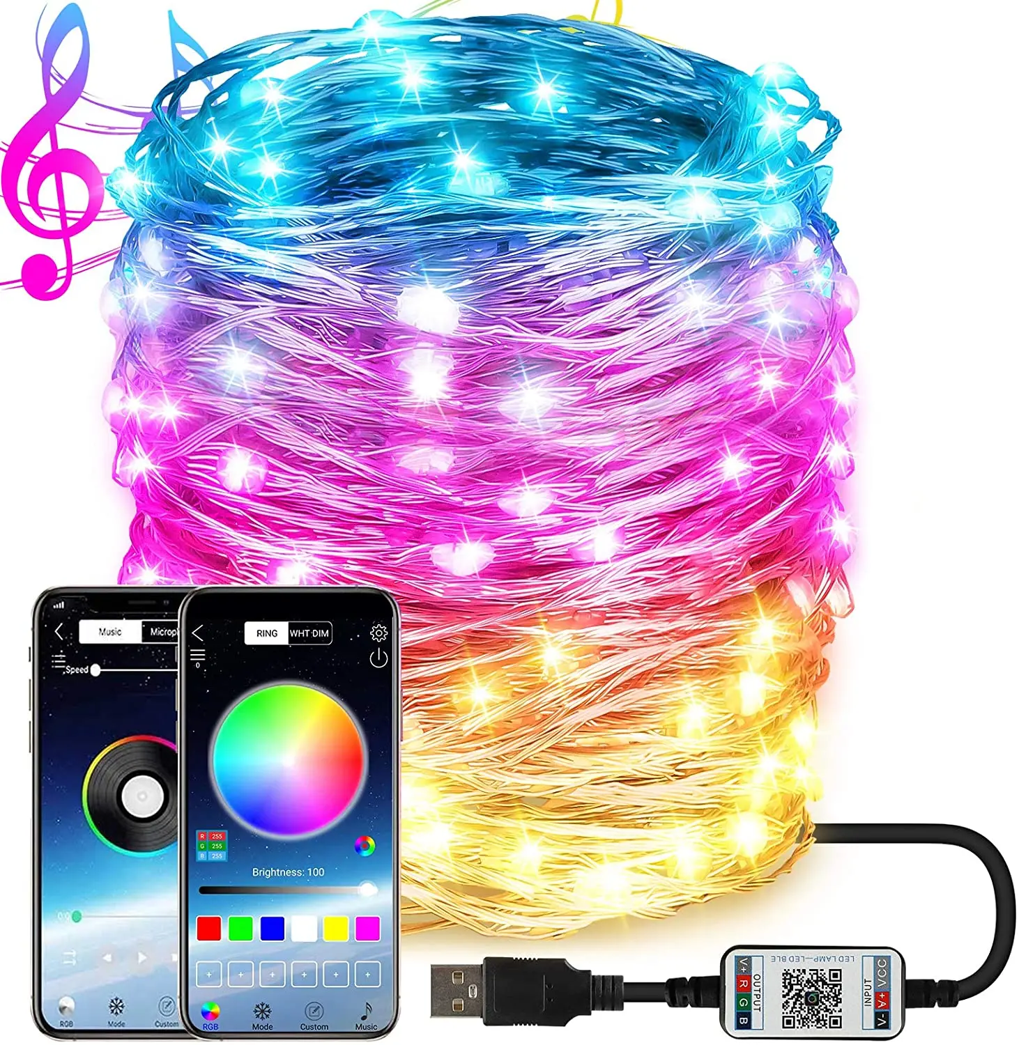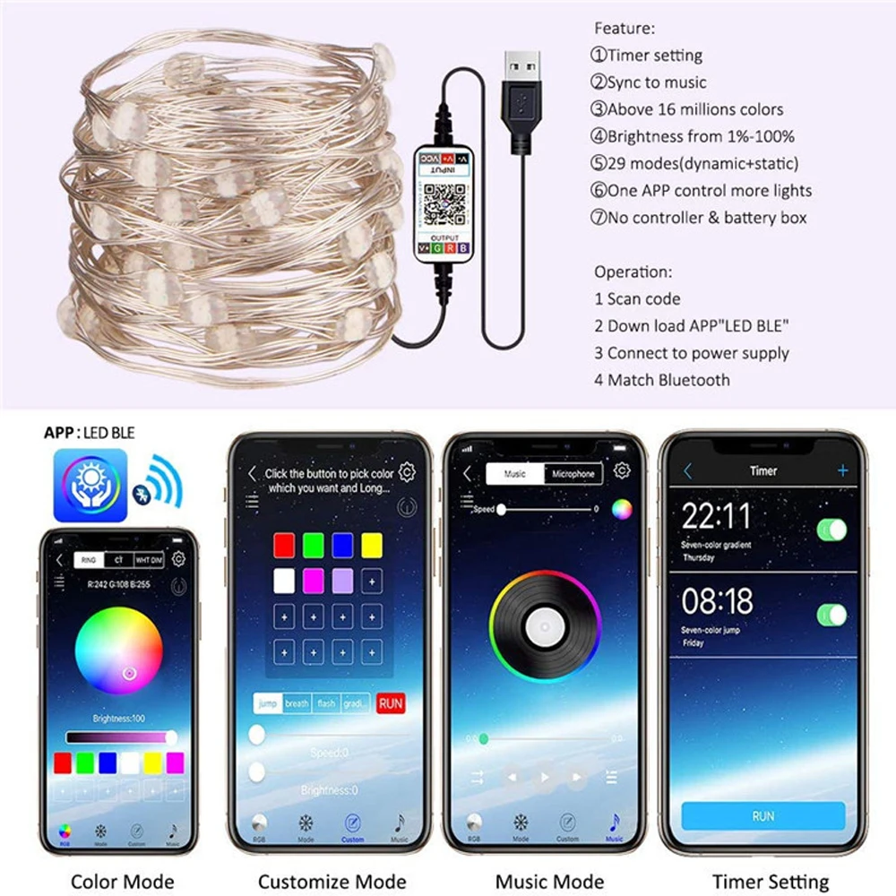 Умная гирлянда rgb с таймером и дистанционным управлением, USB мерцающие огни с управлением через приложение, смешные режимы для украшения рождественской елки