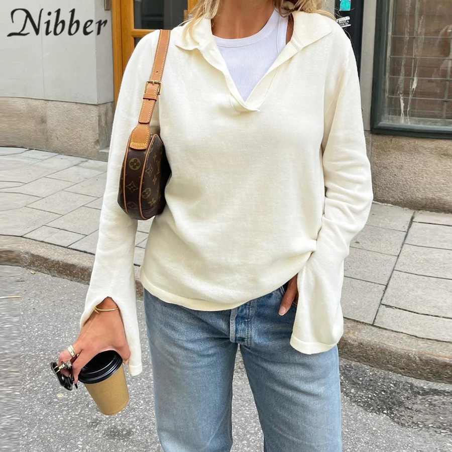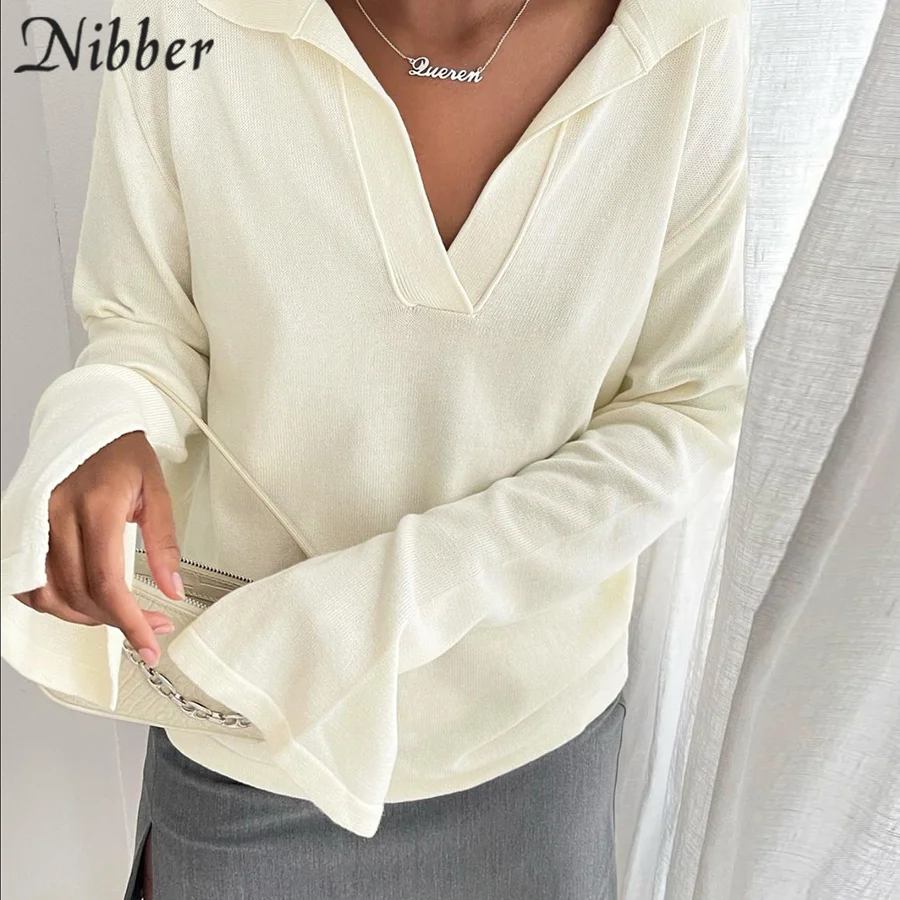 Элегантный Повседневный Женский Однотонный свитер Nibber, Женский пуловер, Модный женский свитер с воротником-поло, пригородная уличная одежда